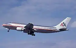 The accident aircraft, registration N14053,[6] was an Airbus A300 B4-605R delivered new to American Airlines on 12 July 1988. The aircraft's first flight was on 9 December 1987, and it was the first "R" model A300-600 built. On the day of the accident, it was in a two-class seating configuration with space for 251 passengers, and all seats were filled: 16 business-class seats and 235 economy-class seats.[7]: 412, 414 The aircraft was powered by two General Electric CF6-80C2A5 engines.[1] On board were nine crew members, including 42-year-old Captain Edward States,[b] who was the pilot monitoring and undertaking radio communications, and 34-year-old First Officer Sten Molin, who was the pilot flying.[c]