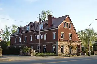 It is a two-and-a-half-story building, somewhat Richardsonian Romanesque in style.[2]