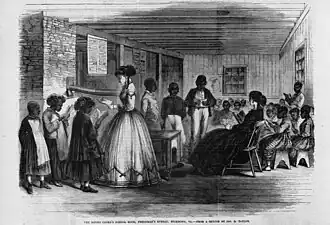 The Commission used Federal money to establish schools and churches in the South in an attempt to employ and educate former slaves. They helped to establish 1,600 day schools which eventually became 1,737 day and night schools with over 100,000 students and nearly 2,800 teachers by 1870.[2] The commission's mission was successful, and the bill's life was extended in Congress in January 1866.