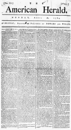 The American Herald (1784-1790) was a newspaper in Boston and Worcester, Massachusetts, published by Edward Eveleth Powars and Nathaniel Willis.[1][2][3][4]