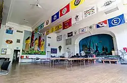 The Center was founded in 1953 by Native Americans with assistance from the Quaker-affiliated American Friends Service Committee (AFSC). John Willard, the executive director of the AFSC in Chicago played a key role in organizing and raising funds for the project.[4] From its start, the Center has been overseen by the Native American members, from a variety of tribes, who make up its board. One of its longest-running social and educational programs is the annual pow-wow, and it has also organized study opportunities, exhibits, and conferences with academic institutions.[9] The Center has also collaborated with Chicago Public Schools to establish alternative education programs for Native American students, including Little Big Horn High School in 1971.[10] In addition to its present center in Chicago, which opened in 1966, in 2005 it opened the Trickster Gallery in Schaumburg, Illinois, to showcase contemporary Native American artists. Trickster Gallery is no longer affiliated with AIC. The AIC is a member of the Chicago Cultural Alliance. Archery at the American Indian Center hosts a Junior Olympic and Adult Achievement program.