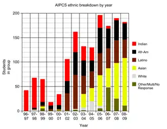 By 2007–2008, the AIPCS student body demographics had changed. The approximately 180 students represented the following ethnic groups: