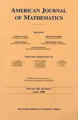 The American Journal of Mathematics is a bimonthly mathematics journal published by the Johns Hopkins University Press.