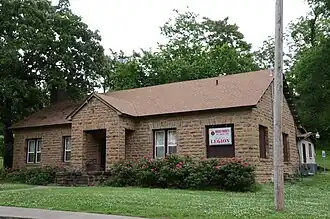 The American Legion Hut in Tahlequah City Park, jct. of E Shawnee St. and N. Brookside Ave., in Tahlequah, Oklahoma was built in 1937 and was listed on the National Register in 2006. It reflects WPA Standardized Style and is also known as Rhodes Pritchett American Legion Hut Post 50 and served as a meeting hall.[1]