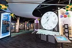The museum has both permanent and rotating exhibits, including robots, science puzzles, a NOAA weather station, a timeline of atomic discoveries, a large Van de Graaff generator, a display devoted to nuclear weapons and the Y-12 Plant, and a solar energy demonstration project. Its flagship exhibit, titled "Secret City - The Oak Ridge Story", was completely redesigned and rebuilt in 2007. A World War II-vintage flat top house, one of many inhabited by Manhattan Project workers in Oak Ridge, opened as a walk-through attraction in 2009, but was moved to the grounds of the Children's Museum of Oak Ridge in 2018 and is now used by the Manhattan Project National Historical Park as part of a display of the history of Oak Ridge.[1][2] Several photos by Ed Westcott are on display.