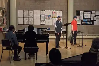 AOP's year-long writing fellowship, "Composers & the Voice" was created in 2002 to bring emerging operatic composers and librettists together with singers, directors, and other artists to create a series of pieces exploring the potential of theatre and the voice. Past and present mentors for the program include Mark Adamo, Mark Campbell, John Corigliano, Tan Dun, Daron Hagen, Jake Heggie, Libby Larsen, John Musto, Tobias Picker, Kaija Saariaho, and Stephen Schwartz. Past participants include Clint Borzoni, David Claman, Conrad Cummings, Randall Eng, Renée Favand, Vivian Fung, Kristin Kuster, Hannah Lash, Gilda Lyons, Robert Paterson, Jack Perla, Zach Redler & Sara Cooper, and Daniel Sonenberg.