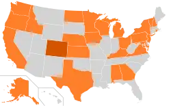 It was a certified write-in option in Alabama,[65] Alaska,[66] California,[67] Connecticut,[68] Delaware,[69] Florida,[70] Georgia,[71] Idaho, Indiana,[72] Iowa,[65] Kansas, Kentucky,[73] Maryland,[74] Massachusetts,[75] Michigan, Minnesota, Missouri, Nebraska, New Hampshire,[65] New Jersey,[65] New York, North Dakota, Ohio,[76][77] Oregon, Pennsylvania,[65] Tennessee, Texas,[78] Utah,[79] Virginia,[80] Washington, and Wyoming.