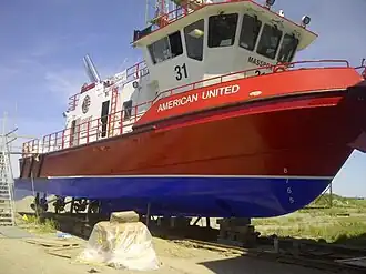 American United is a Ranger-class Robert Allan Ltd. designed fireboat built to serve the Massachusetts Port Authority as a replacement to Massport Marine Unit 1, the Howard W. Fitzpatrick. It was scheduled to be placed in service in June 2011, and was delivered October 11, 2011, due to the complexity of the build.[3][4][2][5][1]