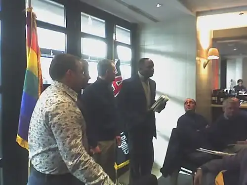 - ^ ABC News: Leah Hope, "Group celebrates end of 'don't ask, don't tell'," September 21, 2011, accessed February 21, 2012. See also Chicago Tribune: Ryan Haggerty, "Gay veteran who fought 'don't ask, don't tell' will re-enlist for military service," October 24, 2011, accessed February 21, 2012