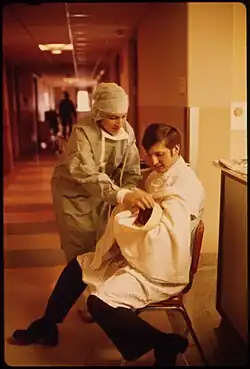 Stay-at-home dads or "househusbands" are fathers that do not participate in the workforce and stay at home to raise their children—the male equivalent to housewives. Stay-at-home dads are not as popular in American society.[25] According to the U.S. Census Bureau, "There are an estimated 105,000 'stay-at-home' dads. These are married fathers with children under fifteen years of age who are not in the workforce primarily so they can care for family members, while their wives work for a living outside the home. Stay-at-home dads care for 189,000 children."[26]