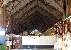Inside-out framing has the sheathing boards or planks on the inside of the framing.[21] This type of structure was used for structures intended to contain bulk materials like ore, grain or coal.