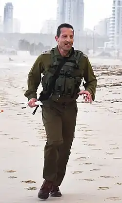 He enlisted in the IDF in November 1988, volunteering for the Paratroopers Brigade and was assigned to the Paratrooper Reconnaissance Unit. He completed the training as a combat soldier, followed by the Infantry Commanders Course and Infantry Officers Course, graduating as an outstanding cadet. He was appointed as a team leader in the Paratrooper Reconnaissance Unit and later served as deputy company commander. In 1992, he became a company commander in the 890th Battalion.[5] Later, he commanded the Paratrooper Reconnaissance Unit from 1994 to 1996, leading operations including Operation Pink Panther, in which four Hezbollah militants were killed in Lebanon.[6] He subsequently served as a company commander at Officer Training School (Bahad 1). After his term, he pursued studies at the Interdisciplinary Center Herzliya. In February 1999, he interrupted his studies to replace the commander of the Paratrooper Reconnaissance Unit, Eitan Belhassan, who was killed in action in Southern Lebanon.[7] He rehabilitated the unit and led it to numerous operational achievements before the withdrawal from Lebanon in May 2000.[8] After the withdrawal, he resumed his studies at the Interdisciplinary Center Herzliya, earning a law degree with honors. He later attended the National Defense College.