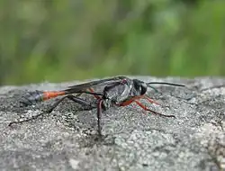 Ammophila is the type genus of the subfamily Ammophilinae of the hunting wasp family Sphecidae. Ammophila is a large and cosmopolitan genus, with over 200 species, mostly occurring in the warmer regions of all continents apart from Antarctica.