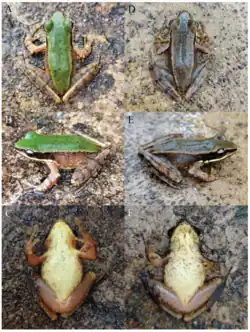- ^ a b c d e Pham, Anh Van; Pham, Cuong The; Ngo, Hanh Thi; Nenh, Sung Ba; Ziegler, Thomas; Le, Minh Duc (2023). "A new species of Amolops (Anura: Ranidae) from Son La Province, northwestern Vietnam" (PDF). Raffles Bulletin of Zoology. 71: 5169. doi:10.26107/RBZ-2023-0004. ISSN 0217-2445.