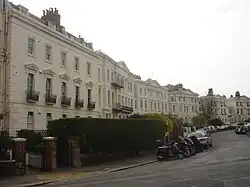Nearby Montpelier Crescent was Wilds junior's largest-scale independent work.[39] Built between 1843 and 1847[40] in the Seven Dials area, whose development had been stimulated by the recent opening of the nearby railway station, it was laid out as a curving terrace of mansions, each divided into two dwellings. Some had pilasters decorated with ammonite capitals.[39] The section of the crescent now numbered 7–31 is listed at Grade II*;[41] the other houses are of a different design and are newer:[19][42] they date from around 1855 and are listed at Grade II in four separate parts.[43][44][45][46]