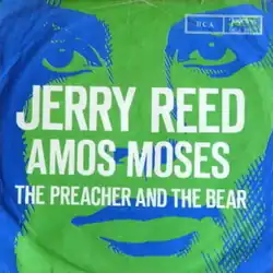 "Amos Moses" is a song written and recorded by American musician Jerry Reed. It was released in October 1970 as the fourth and final single from the album Georgia Sunshine and was his highest-charting single on the Billboard Hot 100, bowing in at No.97 on October 31, 1970, and peaking at No.8 on February 27 and March 6, 1971. It has been used ever since as a line dance taught at YMCAs. "Amos Moses" was certified gold for sales of 1 million units by the RIAA. It was No.28 on Billboard's Year-End Hot 100 singles of 1971 and also appeared on several other countries' charts.