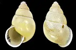 (Original description in Latin) This small shell, predominantly sinistral, is nearly imperforate, ovate-conical, elevated, and polished. It displays a lemon-yellow hue. It comprises six convex whorls, with the body whorl being ventricose. The suture is well-defined. The aperture is subcircular. The peristome is white, reflexed, and dilated at the columella, with closely positioned extremities.[2]