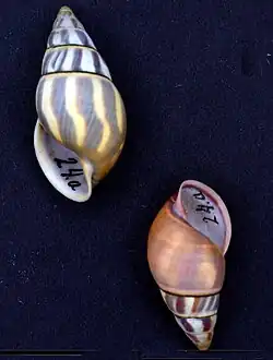 | Shell of Amphidromus rhodostylus (specimen at Naturalis Biodiversity Center) | |