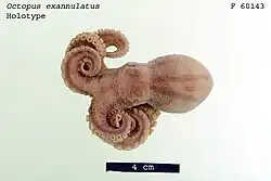 - ^ Bieler R, Bouchet P, Gofas S, Marshall B, Rosenberg G, La Perna R, Neubauer TA, Sartori AF, Schneider S, Vos C, ter Poorten JJ, Taylor J, Dijkstra H, Finn J, Bank R, Neubert E, Moretzsohn F, Faber M, Houart R, Picton B, Garcia-Alvarez O (eds.). "Amphioctopus exannulatus (Norman, 1993)". MolluscaBase. World Register of Marine Species. Retrieved 26 June 2025.