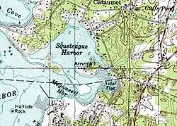 Amrita Island is a small inhabited island in Squeteague Harbor in the village of Cataumet in the town of Bourne, in Barnstable County, Massachusetts. Several residential homes are located on the island. Baxendale Road is the only road and it connects the island to the mainland from Megansett Road.