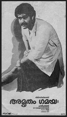 Amrutham Gamaya, (translation: Path to immortality) is a 1987 Indian Malayalam-language drama film directed by Hariharan, written by M. T. Vasudevan Nair and produced by P. K. R. Pillai. It features Mohanlal in the lead role, along with Geetha, Parvathy Jayaram, Vineeth, Thilakan, Devan, Babu Namboothiri and Karamana Janardanan Nair in major supporting roles. The film has no songs, but features a musical score composed by M. B. Sreenivasan.