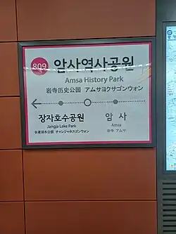 Amsa History Park station (Korean: 암사역사공원) is a subway station on Line 8 of the Seoul Metropolitan Subway system.[1]