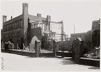 In the Second World War the industry fields in Amsterdam-Noord were the target of the air bombings by the Allied Forces.[1] The Fokker factories were the 17 July 1943 bombings' goal, but the bombs of the United States Army Air Forces fell on the surrounding residential areas, causing 158 deaths and 119 seriously injured as a result. The British’ Royal Air Force and Free French Air Forces both did another attempt to bomb the factory on 25 and 28 July, resulting in the death of 200 citizens in total by the three raids.[2] Only the British Forces managed to bomb the targeted airplane factory, all other bombs fell on residential areas in Amsterdam-Noord. This is the heaviest air bombardment that ever hit Amsterdam. 106 houses were destroyed, 206 houses heavily damaged and 676 houses suffered glass and roof damage. Every year a memorial ceremony takes place on 17 July at De Nieuwe Noorder cemetery.