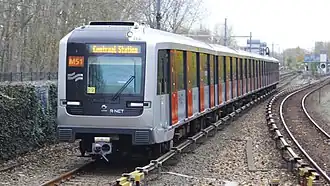 As of January 2016, the Amsterdam Metro system operates 90 electric multiple unit (EMU) trainsets.[49] All use standard-gauge track and run on a 750 V DC third rail electrification system.