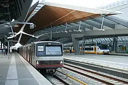There are 33 full metro stations,[1] Since Route 52 on the new North-South Line opened, six additional stations and 9.5 kilometres (5.9 mi) of route have been added to the metro system,[23] yielding a new combined network length of 52 kilometres (32 mi).[24] In 2019, sneltram Route 51 no longer operates into the metro network. The southern sneltram portion was closed for conversion to be incorporated into the tram network.[25]