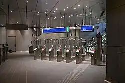 The OV-chipkaart, a nationwide contactless smart card system, is the primary form of ticketing on the metro system.[52] It replaced the strippenkaart system on 27 August 2009, after the two systems had operated in parallel since 2006. Ticket barriers have been installed in all metro stations, with free-standing card readers provided at locations where platforms are shared with train or tram lines.
