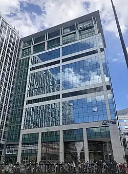 By September 2016, Amundi had moved all of its real estate, private debt, private equity and infrastructure investments onto a single platform dedicated to "real and alternative assets".[30] Creating this line of business brought together €34 billion of assets under management, with the objective of reaching €70 billion of AUM by 2020. The division is predominantly made up of real estate investments. Among the buildings acquired by Amundi since the platform's launch are those in the La Défense business district of Paris, including Cœur Défense (acquired in 2017 in partnership with Crédit Agricole Assurances and Primonial REIM)[31] and the Hekla Tower (acquired off-plan in 2017 in partnership with Primonial REIM). Amundi's property holdings are structured as real estate investment vehicles; the most important of these, "OPCIMMO", was launched in 2011.[32] In private equity, Amundi created Amundi Private Equity Funds, a subsidiary aimed at acquiring stakes in unlisted companies. It offers both debt and equity financing for companies. One debt fund launched by the asset manager in 2017 was backed by physical stocks of ham and Parmesan held in Italy, according to the financial press.[33] In the field of infrastructure investment, Amundi developed a partnership with French energy supplier Électricité de France (EDF) by creating ‘Amundi Transition Energétique’, a subsidiary owned 60% by Amundi and 40% by EDF, to finance projects related to renewable energies.[34] In 2017, Amundi also developed a partnership with the French Alternative Energies and Atomic Energy Commission by creating ‘Supernova Invest’, a company 40% owned by Amundi Private Equity to invest in technological innovation projects in France.[35]