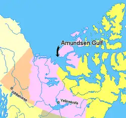Amundsen Gulf is a gulf located mainly in the Inuvik Region, Northwest Territories, Canada with a small section in the Kitikmeot Region of Nunavut.[1] It lies between Banks Island and Victoria Island and the mainland. It is approximately 250 mi (400 km) in length and about 93 mi (150 km) across where it meets the Beaufort Sea.