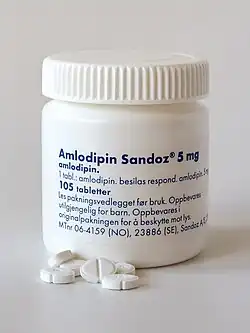 10. ^ a b c d e f g h i j k l m n o p q "Amlodipine Besylate". Drugs.com. American Society of Hospital Pharmacists. Archived from the original on 4 June 2016. Retrieved 22 July 2016.