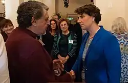 In response to concerns that she would not represent rural voters well, McGrath set up multiple field offices in less populated areas of Kentucky to reach rural voters.[5] The Democratic Congressional Campaign Committee (DCCC) supported McGrath's opponent in the primary.[26][27] McGrath was endorsed by Representative Seth Moulton,[28] Senator Kirsten Gillibrand,[5][29] VoteVets.org, a veterans political action committee (PAC),[30] and With Honor, a veterans PAC.[31]