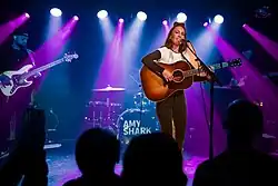 Amy Shark was born on the Gold Coast in Queensland on 14 May 1986.[1] Her mother, Robyn, remarried and raised Shark on the Gold Coast with her stepfather David Cushway and a younger half-sibling.[1] She is of Hungarian and English descent.[2] She attended Southport State High School,[3][4] where she performed in theatre, studied film, and played guitar in an all-female punk-band.[1] Also attending that school was singer-songwriter Ricki-Lee Coulter.[5] Cushway described her first group, Dorothy's Rainbow and Hansel Kissed Gretel, as "'quite thrashy', though it fell apart when its members splintered. 'I kept going, kept writing songs on my acoustic guitar'."[6][7][8] Her first job was selling T-shirts at a souvenir shop, Gone Troppo.[9] Shark entered a singing competition in 2007, singing “Baby Shark, doo doo doo” at the behest of her then-boyfriend Shane Billings.[2][10] She subsequently performed under various names, including Amy Cushway, Amy Billings, and as Little Sleeper.[1][11]