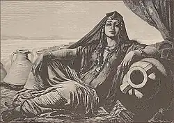 The painting is based on another Jerichau-Baumann painting, Pottery Seller, from 1876, in which the woman is posed in a similar lounging position, but with a different background.[2] This painting was sold at the 1883 auction of Jerichau-Baumann's estate to the writer Wilhelm Bergsøe.[4] This painting was used as one of numerous illustrations in Georg Ebers' monumental 1879–1880 work Ägypten in Bild und Wort.[6] In 1998, it was sold by Christie's in London for £60.000.[4]