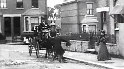An Extraordinary Cab Accident is a 1903 British silent comic trick film, directed by Walter R. Booth, featuring a gentleman making a miraculous recovery after being trampled underfoot by a horse and cab. The film, "seems something of a step back," "compared with the elaborate special effects fantasies that director W.R. Booth and producer R.W. Paul had already concocted," but according to Michael Brooke of BFI Screenonline, "more complex special effects might well have worked against the impression Booth and Paul were clearly seeking to create, which is that of a man being genuinely run over by a horse-drawn cab, his body being knocked down and trampled by the horse's hooves."[1]