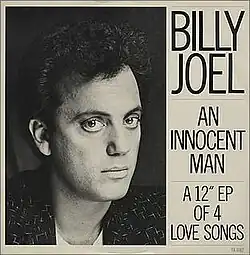 "An Innocent Man" is a 1983 song performed by Billy Joel released as the third single from his album of the same name. The song, whose musical style is an homage to Ben E. King and the Drifters, reached No. 10 on the Billboard Hot 100 chart, the third consecutive top 10 single from the album.[4] It also spent one week at No. 1 on the Billboard adult contemporary chart.[5]