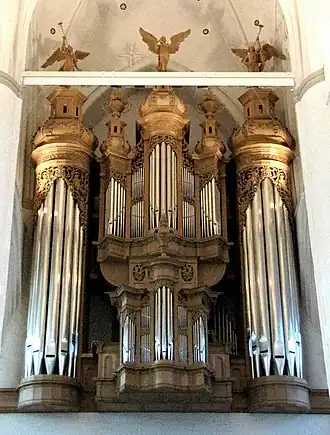 An Wasserflüssen Babylon is a chorale fantasia for organ by Johann Adam Reincken, based on "An Wasserflüssen Babylon", a 16th-century Lutheran hymn by Wolfgang Dachstein. Reincken likely composed the fantasia in 1663, partly as a tribute to Heinrich Scheidemann, his tutor and predecessor as organist at St. Catherine's Church, Hamburg.[3] With its 327 bars, it is the most extended repertoire piece of this kind.[4][5] Reincken's setting is a significant representative of the north German style of organ music.[5][6]