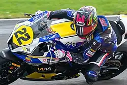 Carrasco decided not to return to Grand Prix motorcycle racing in 2016 because she did not receive any offers with a competitive team.[35] She switched to the FIM CEV Moto2 European Championship in 2016 and rode the Griful MVR-M2 after more than a month of negotiations with the team.[36] She said that her objective was to win races in the category and enter Moto2 in 2017.[35] Carrasco started from the pit lane at the season-opening race at Circuit Ricardo Tormo and was later disqualified for ignoring instructions from the race director to serve a ride-through penalty.[37] Later in the season, her team switched bike manufacturers from MVR to a 2014 Suter.[38] At the season's conclusion, Carrasco did not score any points and was not classified in the final standings because her best finish in all races she entered was eighteenth at the first Circuit de Barcelona-Catalunya race.[39][40]