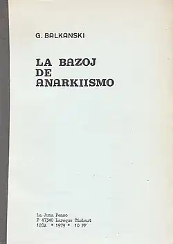 - Firth, Will (1998). "Esperanto and Anarchism". In Jürgen Degen, Hans (ed.). Lexikon der Anarchie. Verlag Schwarzer Nachtschatten. ISBN 3-89041-014-6. OCLC 29629412.