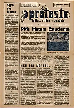 There were other, less extensive demonstrations of protest against the so-called "Celerated Law" of August 1927. This criminal law was in force until 1930, demobilizing the unions under anarchist influence, who found no alternative action in the face of the strengthening of repressive forces, which again interfered in the union space.[142] The "Celerada Law", passed in the government of Washington Luís - which was already disliked by the workers' leaders for having once stated that “the social issue in Brazil is a police issue"[143] - made the crimes of "diverting workers from the establishments where they are employed, through threats and embarrassment", unaffordable, as well as those of “causing cessation or suspension of work through threats or violence, to impose on workers or bosses an increase or decrease in service or salary”,[144] in addition to authorizing the government to indefinitely close the associations, unions, centers or entities of the workers' movement that focused on the practice of crimes or acts contrary to public order.[145] Soon after the law was passed, the police arrested 14 workers in São Paulo, among them, the anarchists Edgard Leuenroth and Domingos Passos and the communist Aristides Lobo.[146]