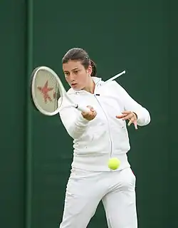 The following year, Sevastova got one of the bigger wins of her early career by defeating world No. 9, Jelena Janković in the first round of the 2010 Monterrey Open and then reached the semifinals, losing there to Anastasia Pavlyuchenkova.[4][7] Following week, she reached third round of the Indian Wells Open, defeating Ana Ivanovic in the second round, before she lost later to Vera Zvonareva.[4] In May, she reached her first WTA singles final at the Estoril Open, where she got the title, beating Arantxa Parra Santonja in straight sets.[8] By the end of the year, she reached four quarterfinals on the WTA Tour, including the one at the Premier Mandatory China Open.[9] Sevastova had a strong start to 2011, reaching round of 16 at the Australian Open, losing there to world No. 1, Caroline Wozniacki, in straight sets.[10] As a result of her progress, she continued to rise on the ranking, getting into the top 40 after Australian Open.[6] She then started to struggle with form, which caused dropping in rankings and also returning to play mostly on the ITF Circuit in 2012.[4] Due to illness and injuries that she faced in the past couple of years, Sevastova announced her retirement from the tour in May 2013.[11]