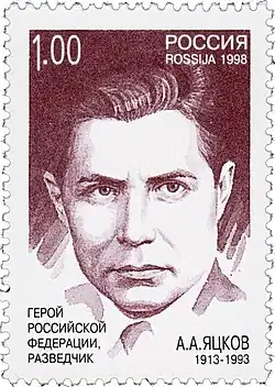 Anatoly Antonovich Yatskov (Russian: Анатолий Антонович Яцков; 18 May [O.S. 31 May] 1913 – 26 March 1993), also known as Anatoli Yatzkov (alias in the U.S. Anatoly Yakovlev)[2] – was a Soviet consul in New York as well as an NKVD foreign intelligence officer handling American agents and couriers linked to the U.S. Manhattan Project during WWII. His spy cover was eventually blown by the U.S. Army Venona Program which identified him as a key NKVD spymaster involved in the 1940s Atomic Spy Ring.