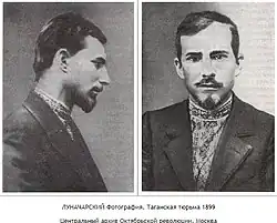 In 1899, Lunacharsky returned to Russia, where he and Vladimir Lenin's sister revived the Moscow Committee of the Russian Social Democratic Labour Party (RSDLP), until they were betrayed by an informant and arrested. He was allowed to settle in Kiev, but was arrested again after resuming his political activities, and after ten months in prison he was sent to Kaluga, where he joined a Marxist circle that included Alexander Bogdanov and Vladimir Bazarov.[7]
