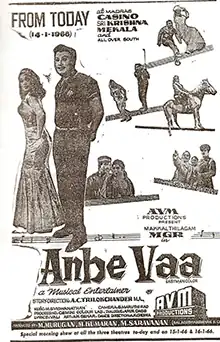 - ^ a b "50வது ஆண்டில் 'அன்பே வா'!" ['Anbe Vaa' in its 50th year!]. Dinamalar (in Tamil). 14 January 2015. Archived from the original on 29 June 2016. Retrieved 29 June 2016.