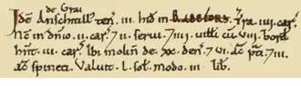 He is listed in the Domesday Book of 1086 as the lord of six Oxfordshire manors; he is listed according to his Latinised name Anschtallus de Grai.[6] The manors held by Anchetil de Greye were as follows:[1][7]