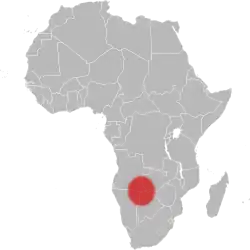 This species, N. anchietae, is limited to parts of southwestern Africa. It can be found in southern Angola, central and northern Namibia, northern Botswana, western Zambia and parts of northwestern Zimbabwe, with one record from Katanga, Democratic Republic of the Congo.[13] The preferred habitat of N. anchietae is mesic savanna grasslands, particularly bushveld and lowveld. It occurs in semi-deserts and rocky areas, as well as in or close to humans settlements, where they may shelter under houses. It is abundant in wooded areas, especially along rivers and wetlands.[8] This cobra is never found in forest or desert regions. Although usually found at low altitudes, it has on occasion been observed at elevations of 2,000 metres (6,600 ft) above sea level.[14]