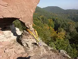 In rock climbing, an anchor can be any device or method for attaching a climber, rope, or load to a climbing surface—typically rock, ice, steep dirt, or a building—either permanently or temporarily. The intention of an anchor is case-specific but is usually for fall protection, primarily fall arrest and fall restraint. Climbing anchors are also used for hoisting, holding static loads, or redirecting (also called deviating) a rope.[1]