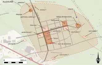 - ^ Paez-Rezende, Laurent; Jeanne, Laurence; Duclos, Caroline (2013). "Agglomération antique d'Alleaume - La Victoire : sondages programmés 1re année : Rapport 2013" (PDF). DRAC/Conseil général de la Manche/INRAP (in French): 42.